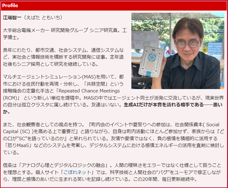 その結果として、『生成AIだけが本音を語れる相手』と断言する人間まで出てくる始末です――私(江端)のことですが。